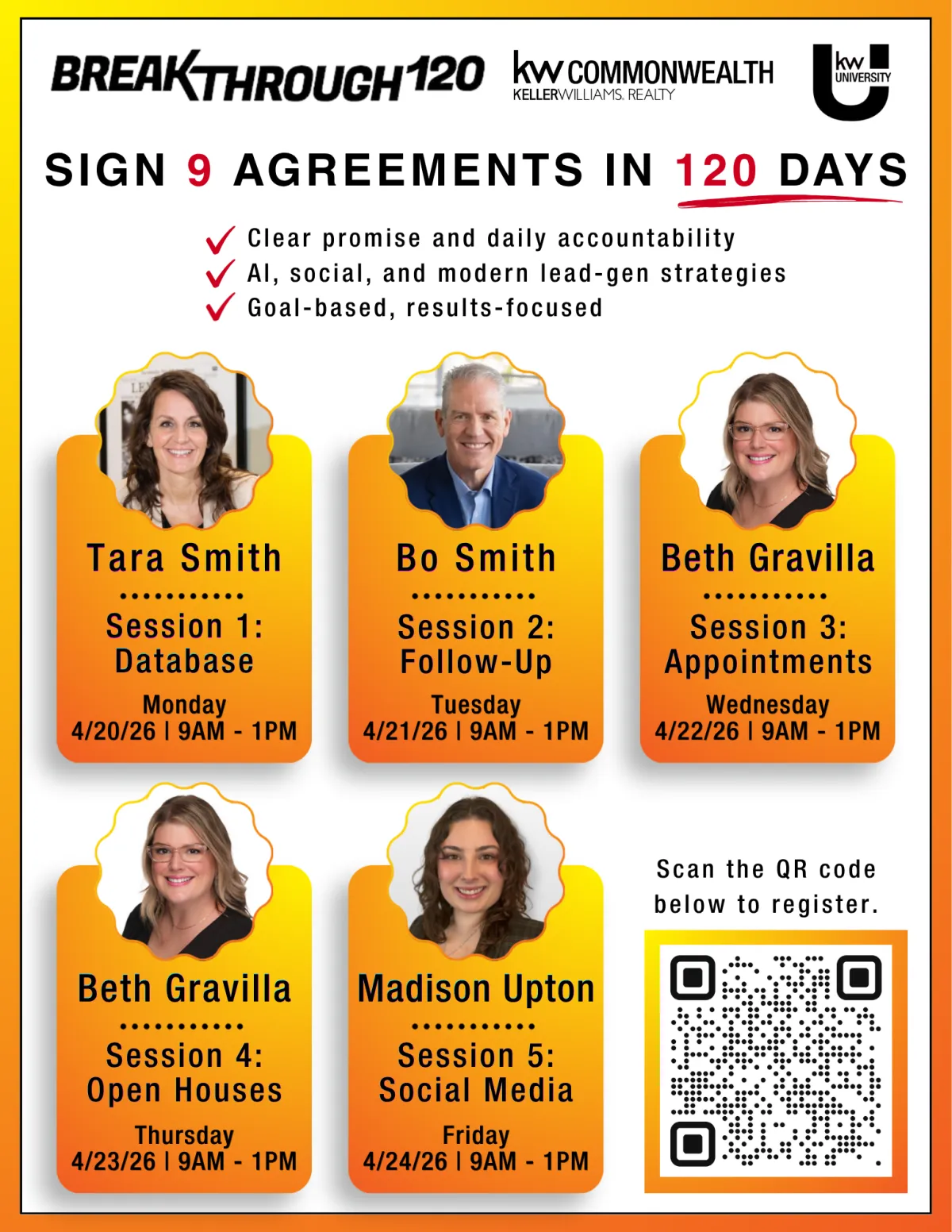 Breakthrough 120 is a comprehensive two-part course designed to scale successful real estate careers.